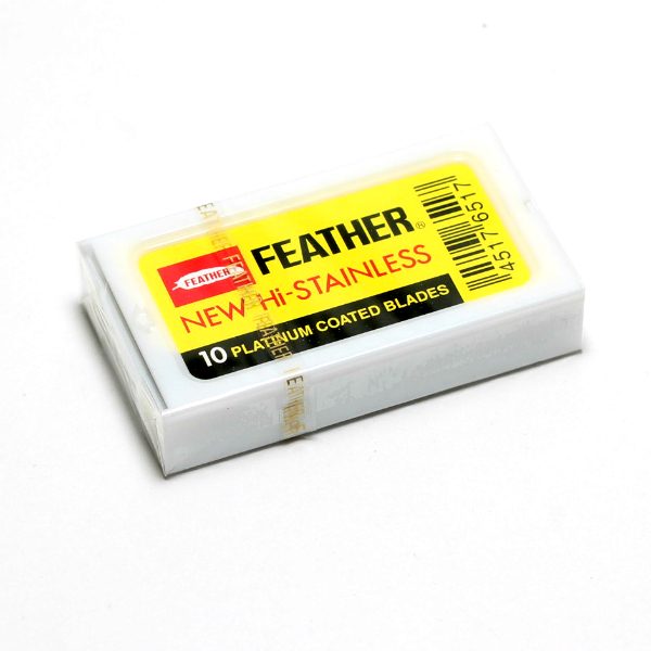 Las Cuchillas de Afeitar Feather Hi Stainless 🪒🇯🇵 son fabricadas en Japón y reconocidas por su filo extraordinario y su capacidad para ofrecer un afeitado limpio y sin irritación. La versión amarilla incluye 10 hojas de doble filo recubiertas de platino, cada una empaquetada individualmente para mayor higiene. Compatibles con maquinillas de seguridad y shavettes, son una elección top para quienes buscan precisión, suavidad y tradición japonesa en cada afeitado.