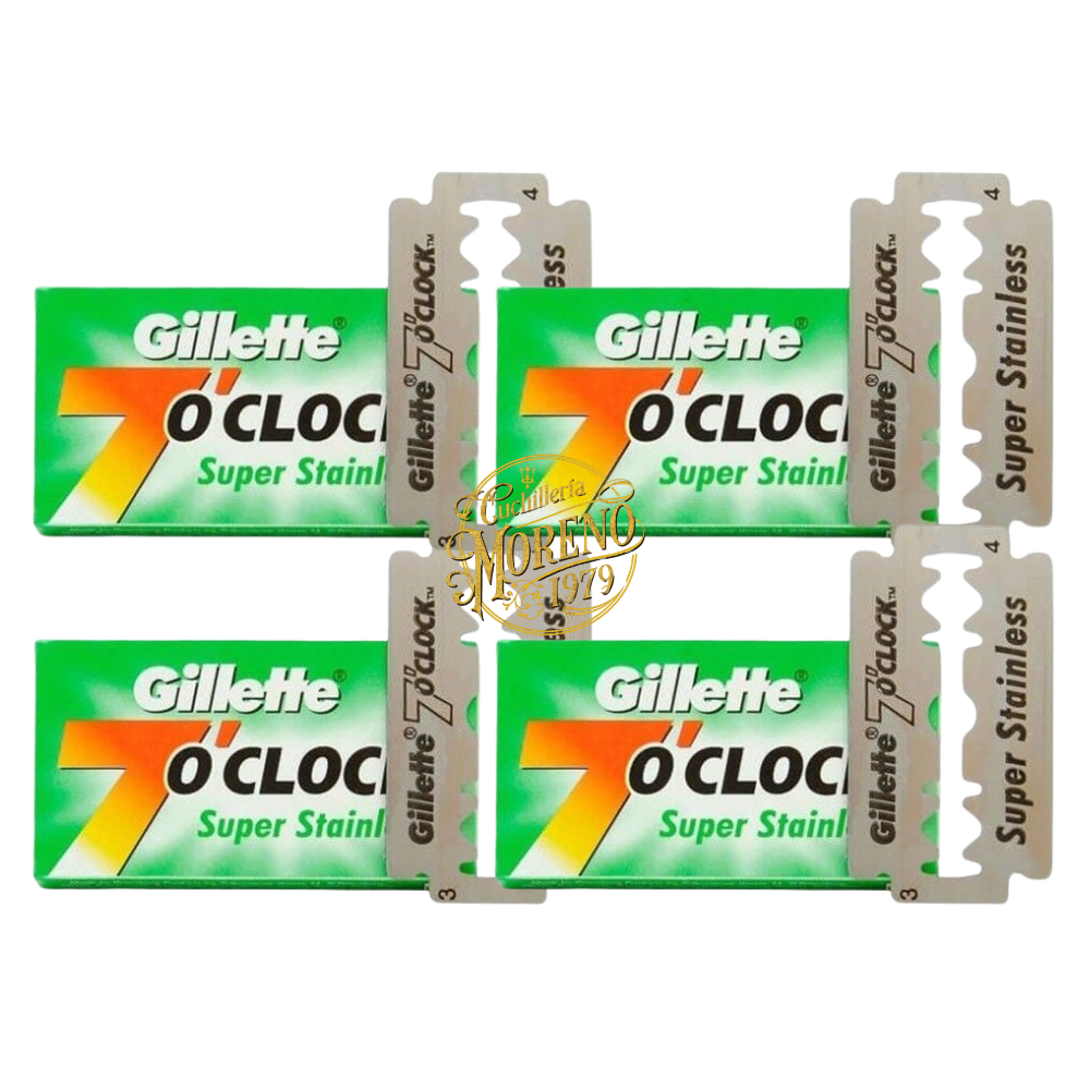 Cuchillas de Afeitar Doble filo GILLETTE 7 O´CLOCK SUPER STAINLESS 20 Unidades