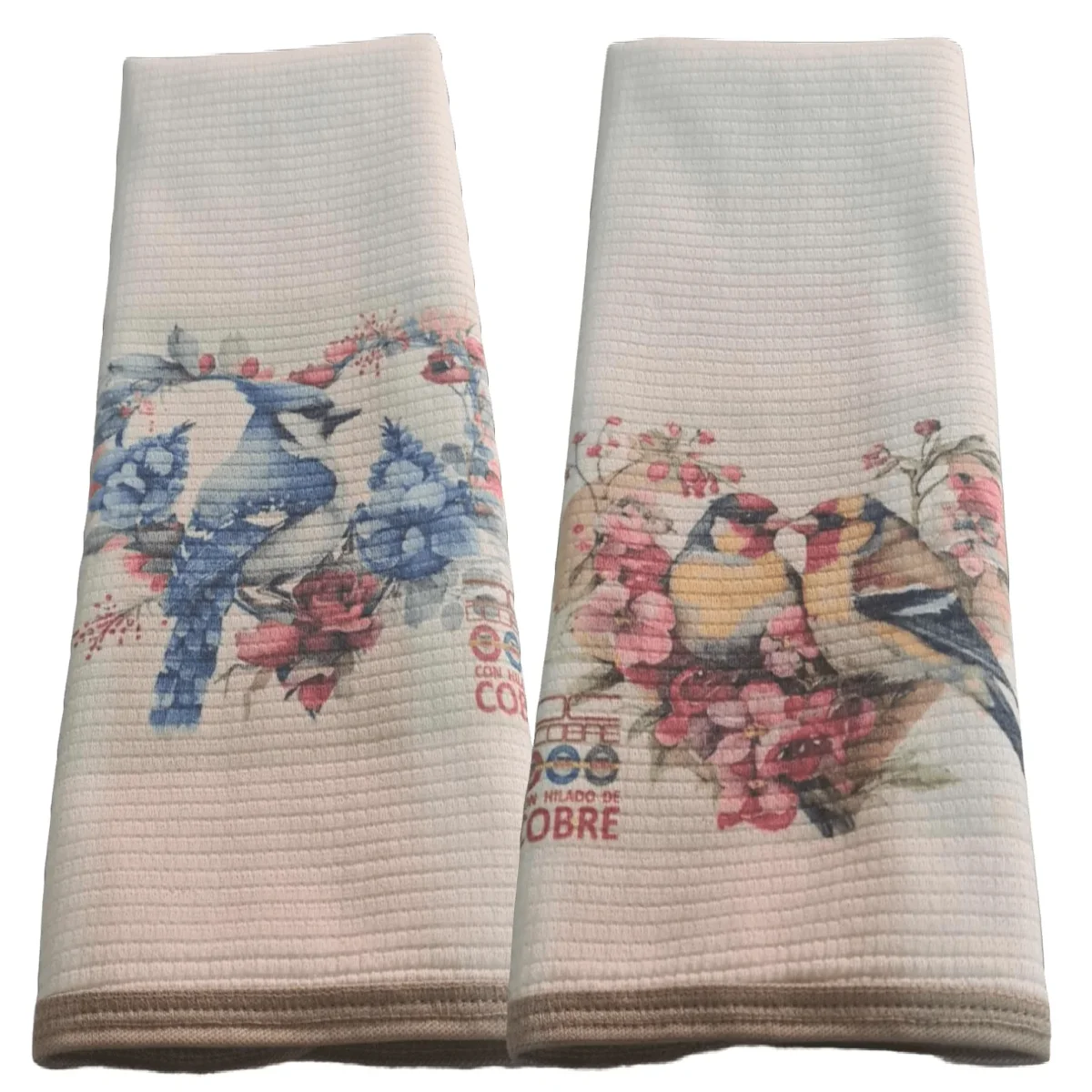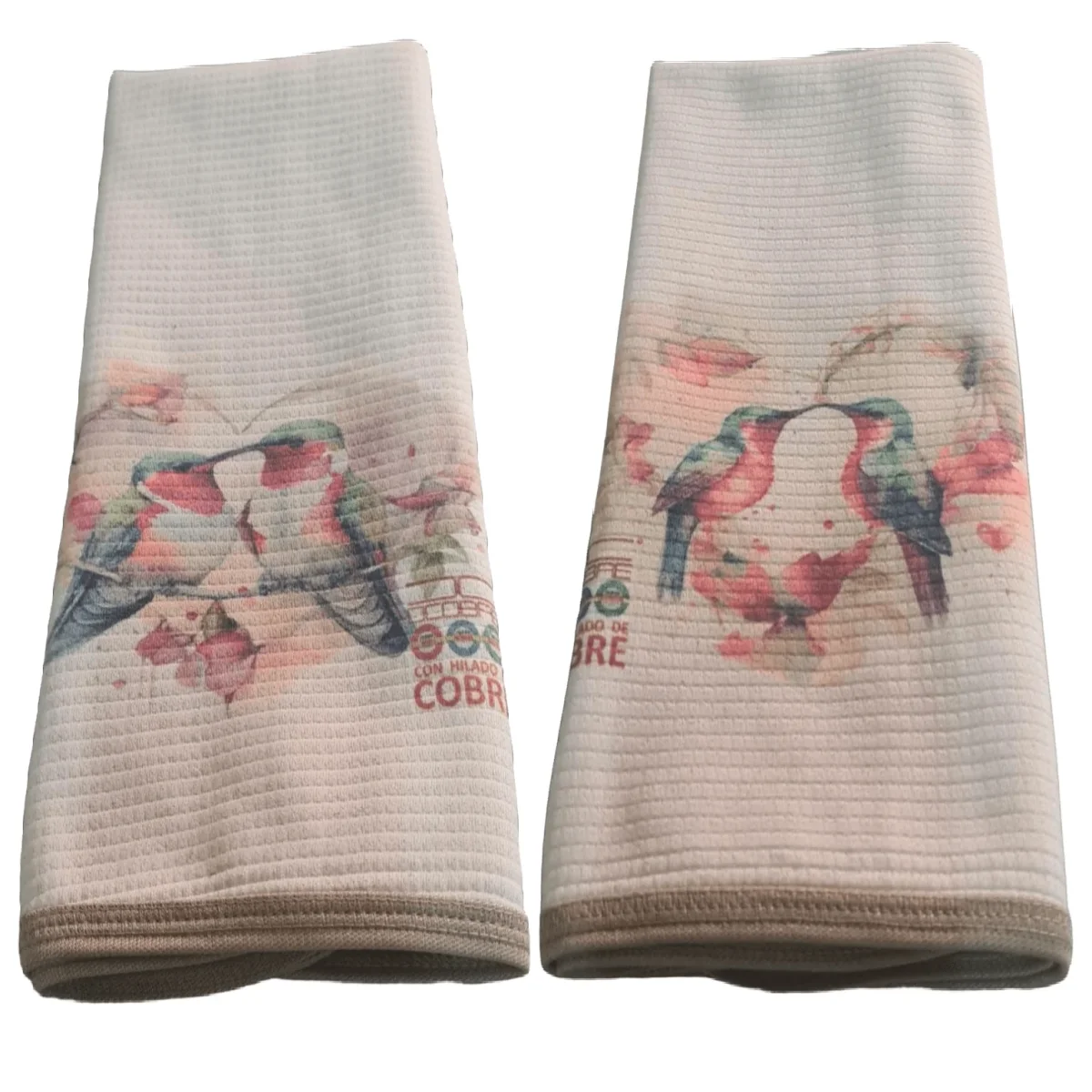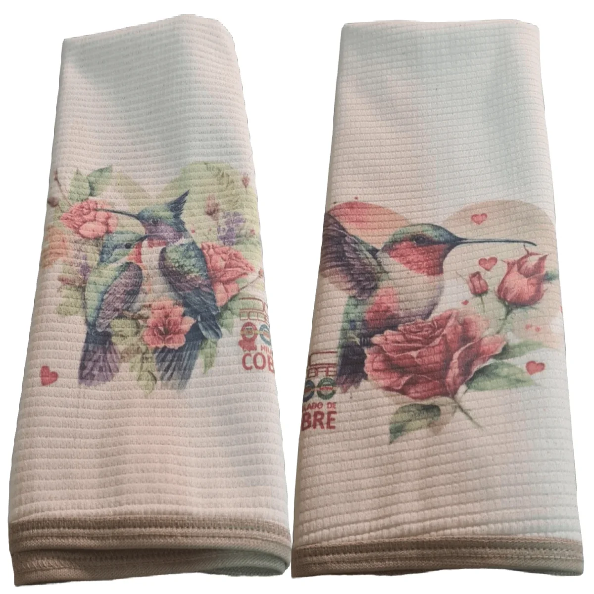 Pack 2 Paños platos Algodon, con Cobre ,Diseño COLIBRI Y ROSA, LIQUIDACIÓN, NUEVO.