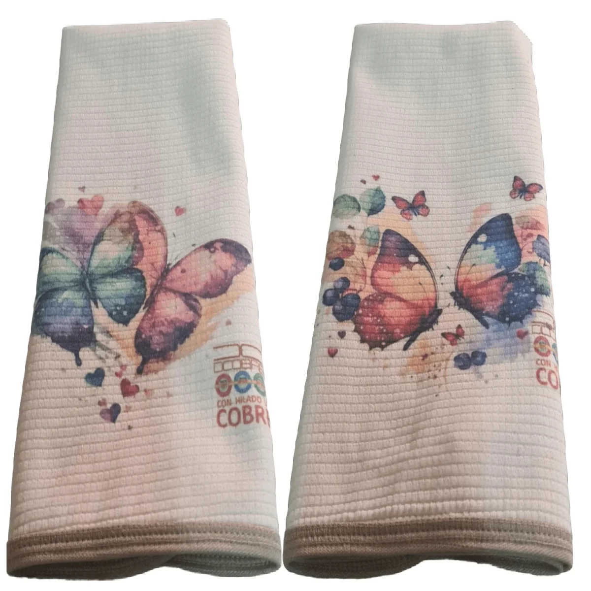 Pack 2 Paños platos Algodón con Cobre ,Diseño MARIPOSAS, LIQUIDACIÓN.
