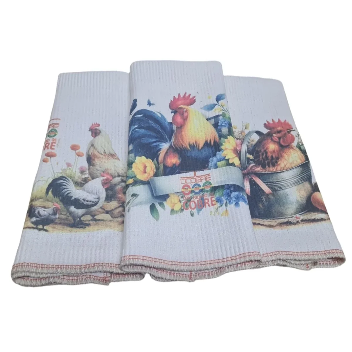 Pack 3 Paños de platos Cobre elimina gérmenes y olores Mod. Gallinas , absorbente (grueso).