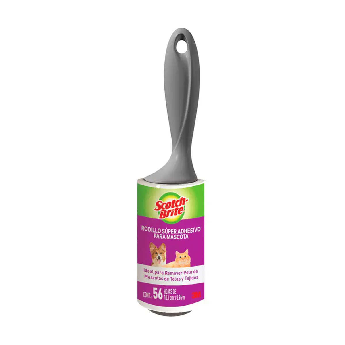Rodillo Adhesivo Quita Pelos y Pelusas para Mascotas Scotch Brite 3M (56 Hojas)