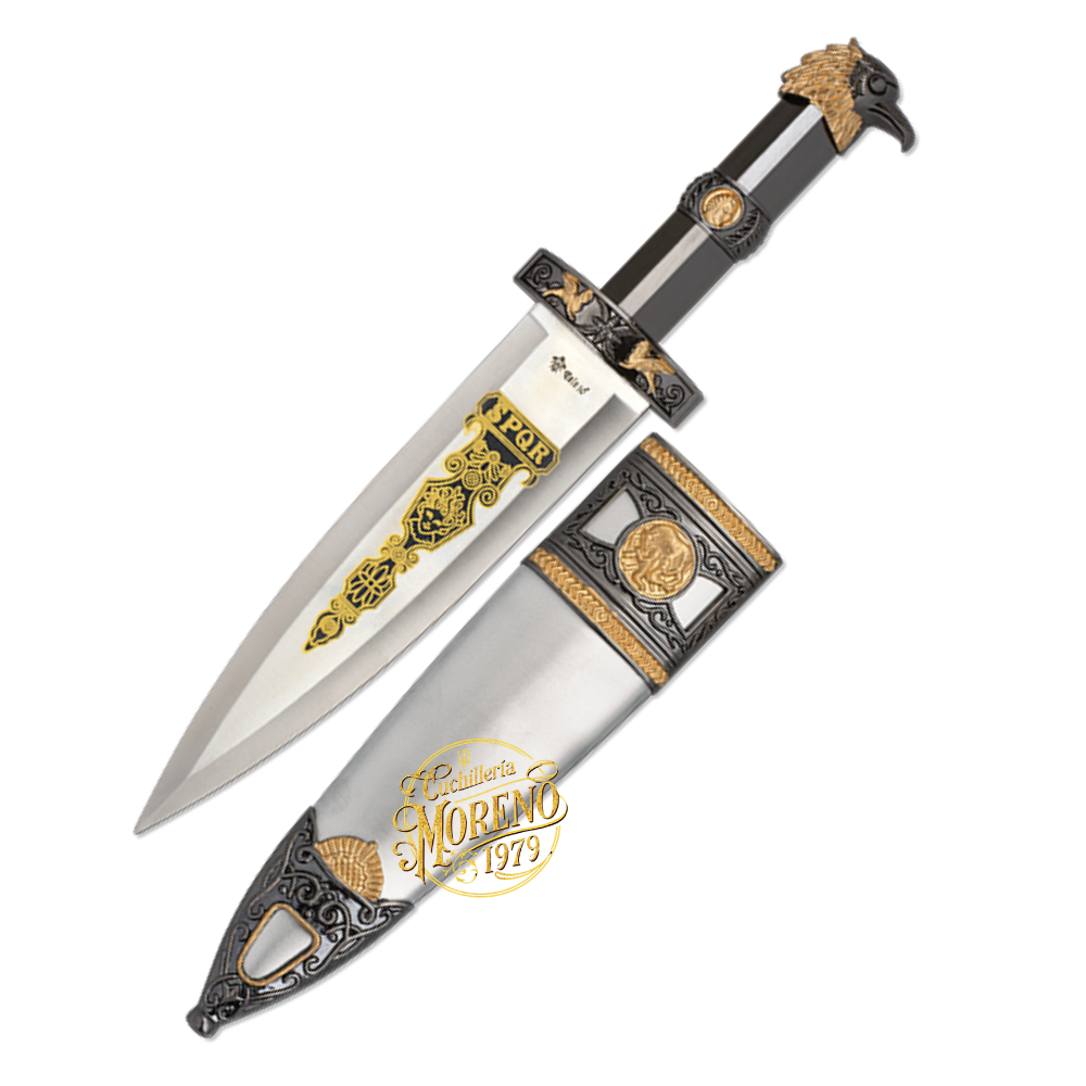 El precio original era: €29.90.€23.92El precio actual es: €23.92.Característica Descripción Nombre Daga Romana Clásica Águila Material Hoja Acero inoxidable Material Mango Metálico decorado Tamaño Hoja 19 cm Longitud Total 33.5 cm -