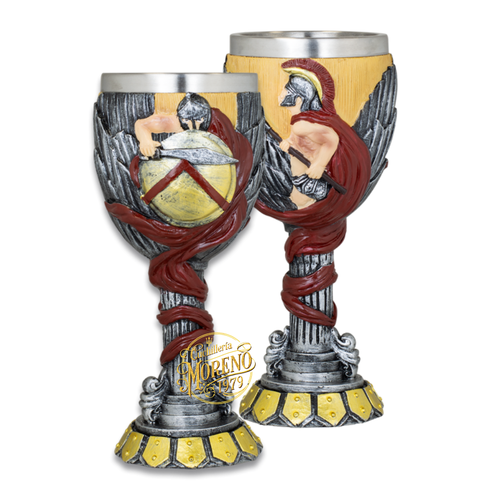 La copa de resina ESPARTANO de Tole10 Imperial es una pieza impresionante con relieves en 3D de guerreros espartanos y una base inspirada en columnas griegas. Su diseño detallado y su vaso metálico la hacen perfecta para coleccionistas y fanáticos de la historia. No apta para lavavajillas ni microondas.