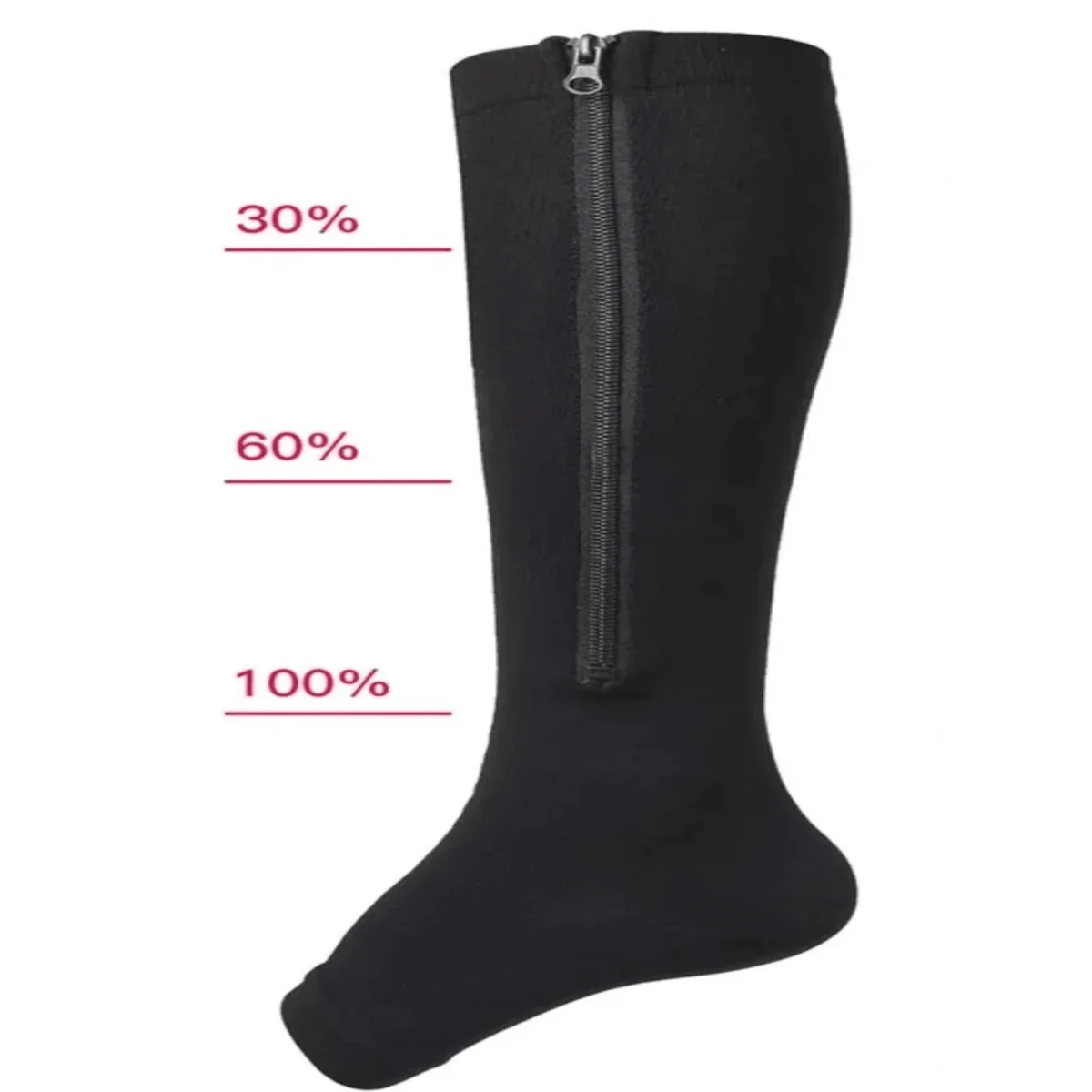 1 Par de calcetín de compresión , con cierre. Con infusión de Cobre. Al comenzar a utilizar los calcetines con compresión, aliviará el dolor y la incomodidad de tus piernas.