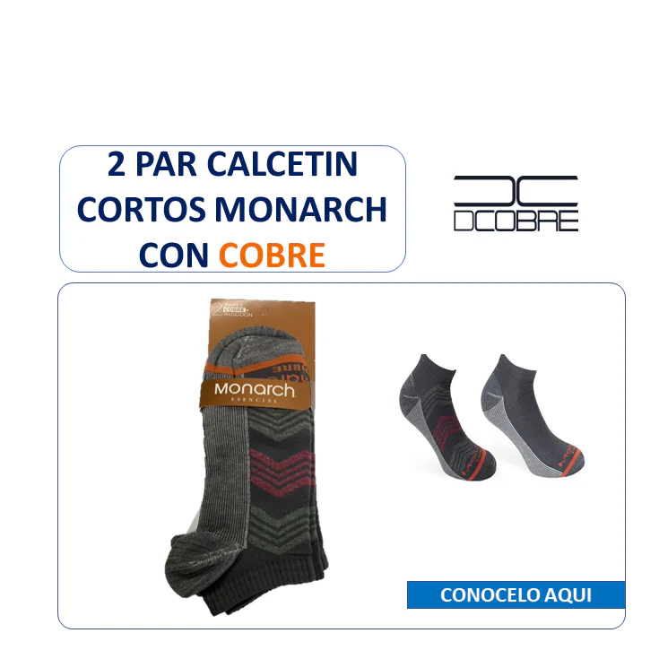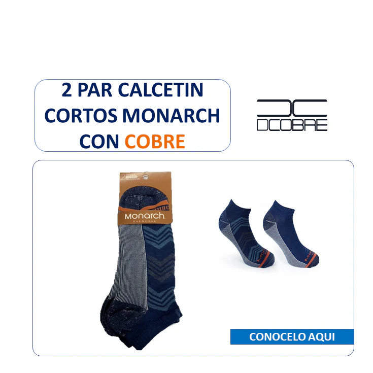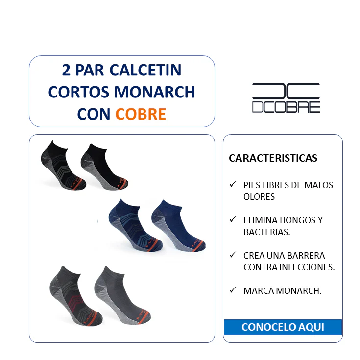 2 Par de calcetín cortos para varón MONARCH, pies libres de malos olores, elimina hongos y bacterias. Mejora la tonalidad de la piel. Reduce y elimina manchas en la piel causadas por los hongos. Acelera el proceso de cicatrización.