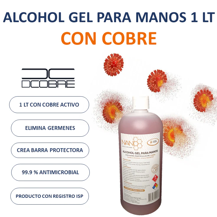 Es el primer Gel para manos con Nanopartículas de Cobre, de acción prolongada con registro ISP. Capaz de crear una barrera protectora 99.9% antimicrobiana permanente para tus manos.