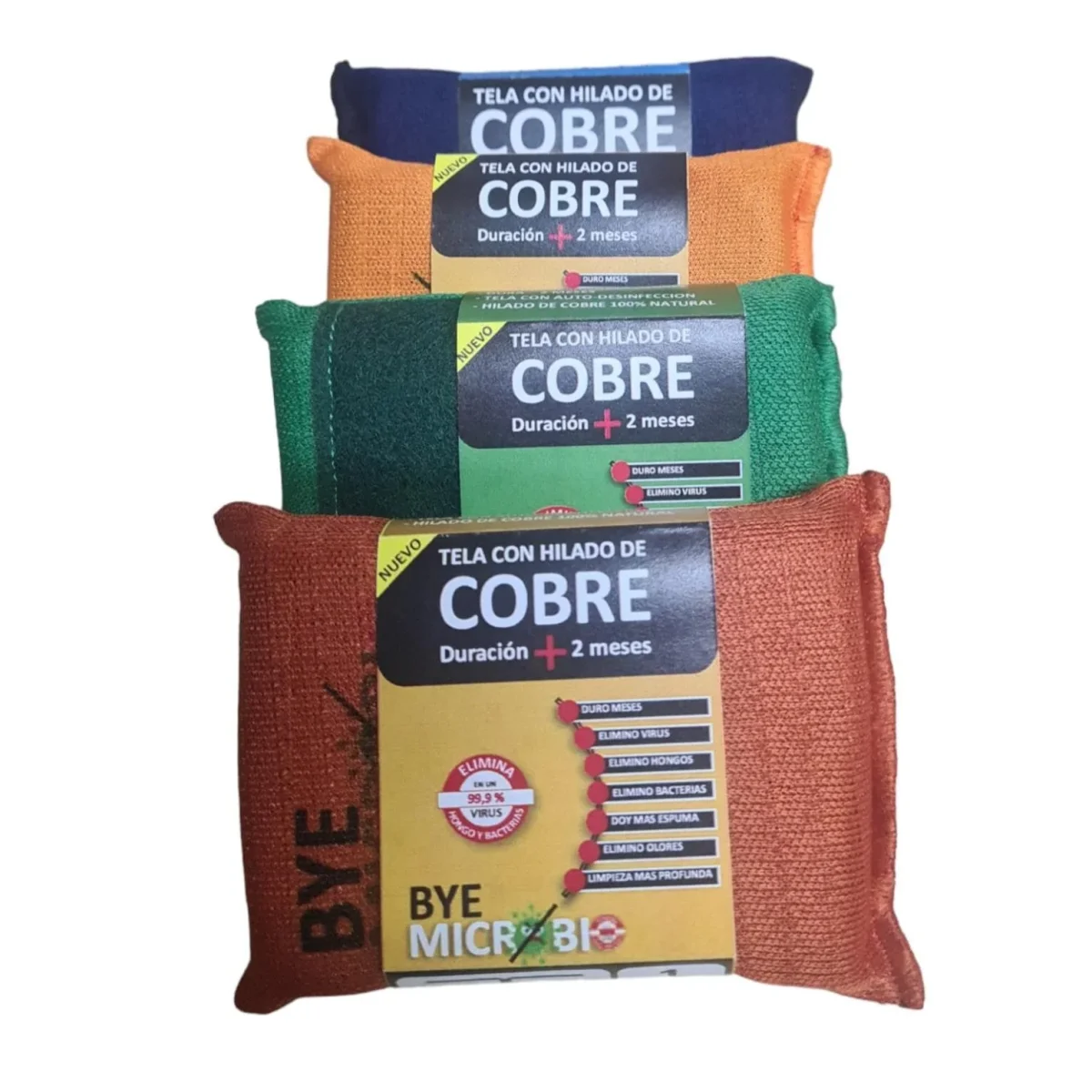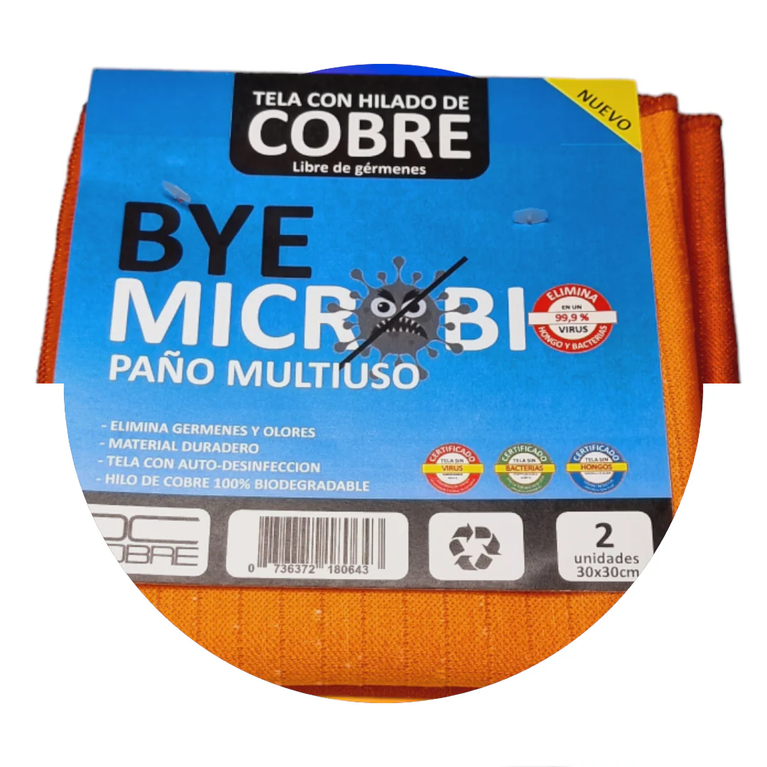 Paños Poliéster/Algodón fabricados con tela CoureTex el cual es fabricada por Textil Coure, con la capacidad de proteger en forma autónoma y natural gracias a las propiedades del Cobre puro que va tejido dentro de las fibras del tejido.