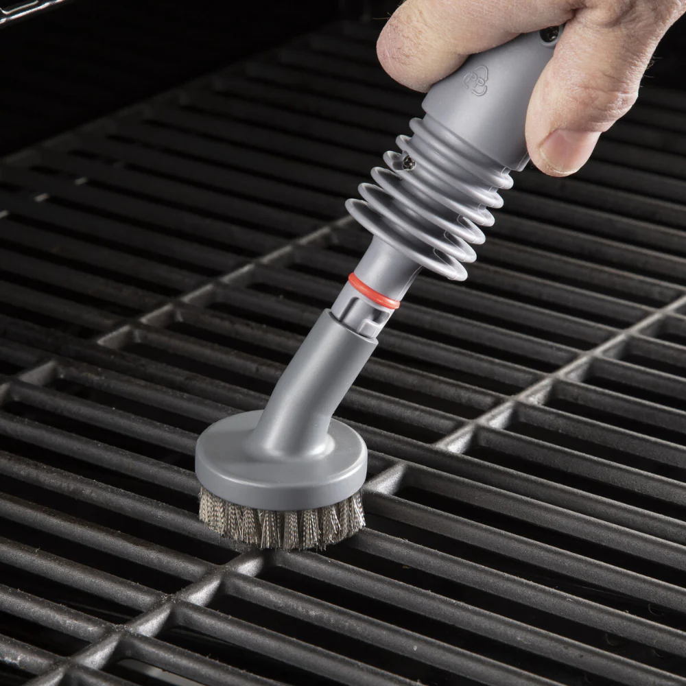 El sistema de limpieza a vapor Cuisinart Grill Renew es la mejor herramienta de limpieza profunda para todos sus equipos de cocina al aire libre. El sistema de limpieza cuenta con una unidad de vaporizador de 1,5 tazas de capacidad que se calienta en menos de 5 minutos con un tiempo de funcionamiento continuo de 10 a 12 minutos. También se incluye una manguera de rociado larga, una boquilla rociadora y 5 accesorios de limpieza diferentes diseñados específicamente para ayudarlo a limpiar todas las áreas de su parrilla o ahumador. Tanto la manguera como la boquilla se adaptan a los 5 accesorios de limpieza. También se incluyen una taza medidora y un embudo para ayudar con el llenado. El cabezal de limpieza Grill Renew es una alternativa de limpieza sin cerdas para las rejillas de su parrilla, que cuenta con un plástico flexible de alta temperatura envuelto en un paño de fibra de aramida súper duradero que ayuda a eliminar fácilmente la grasa y la suciedad. El cabezal de limpieza circular de cerdas de alambre de acero es una solución de limpieza de parrilla tradicional que es ideal para rejillas de parrilla de hierro fundido y partes interiores de la parrilla como carpas de calor y bandejas de grasa. El cabezal de limpieza circular de cerdas de nailon es un accesorio suave y no abrasivo perfecto para limpiar las superficies exteriores de su parrilla que pueden rayarse.
