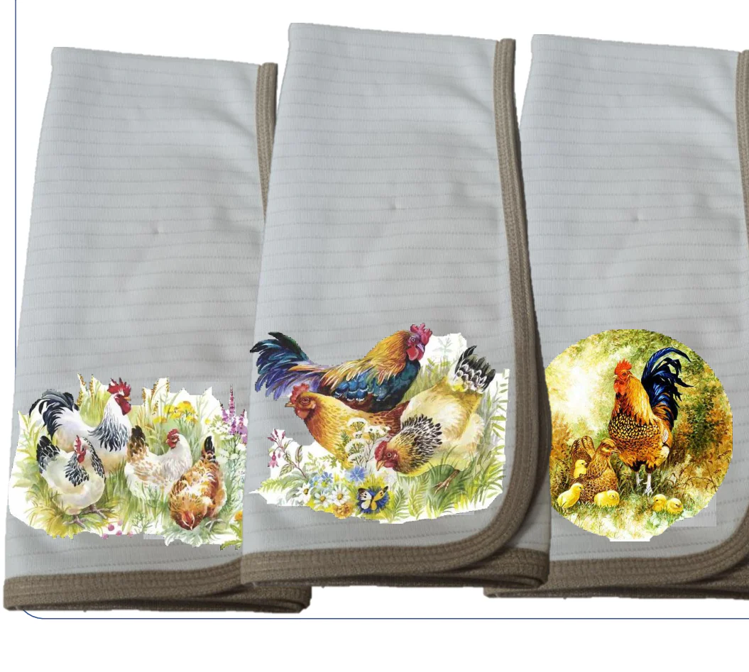 NUEVO Pack 3 Paños de loza en COBRE modelo Gallinas Casa.
